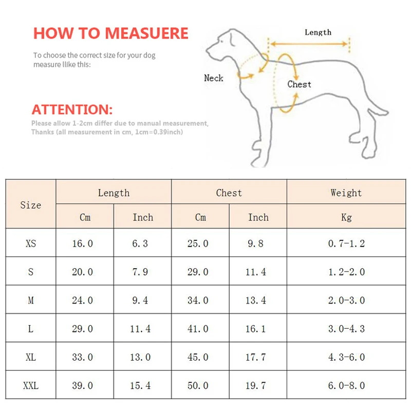 XL: Chest 55cm/21.65'' ; Length 41cm/16.14'' ; Neck 37cm/14.57'' .